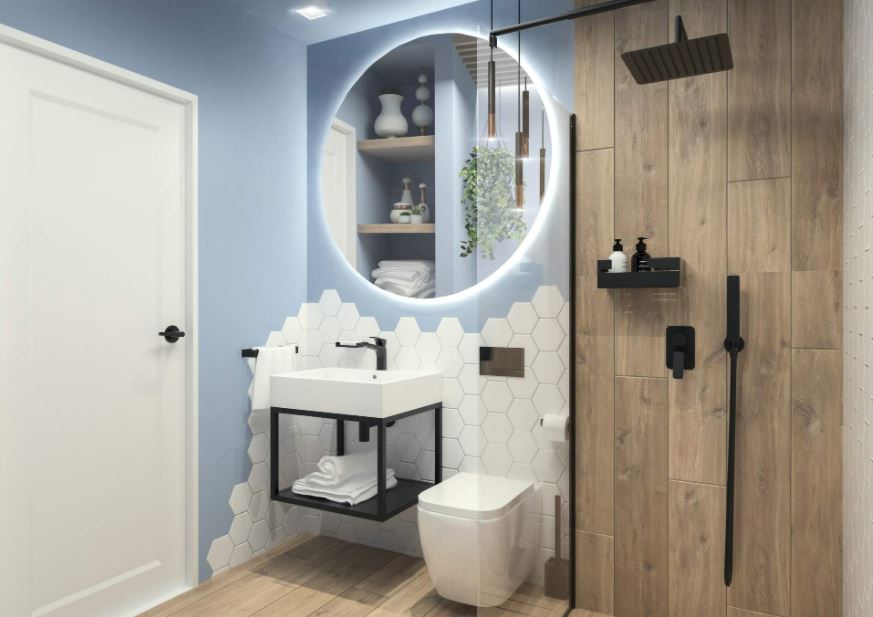 DEANTE vannitoa konsool TEMISTO keraamilise valamuga, 500x500x415mm, seinale kinnitatav, roostevaba teras, must