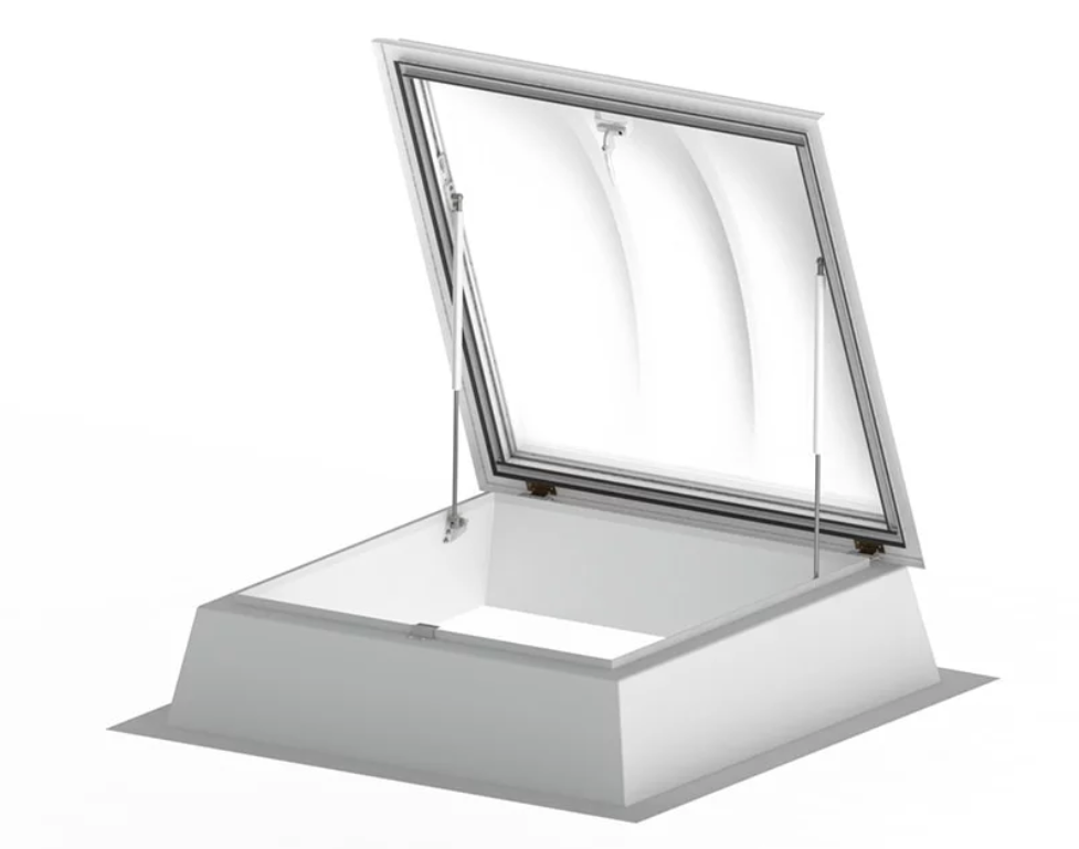 LAMILUX F100 LAd 100/100 K15 Mootoriga ventileeritav. 2x akrüülkuppel. 15cm alusraam. Valge PVC.
