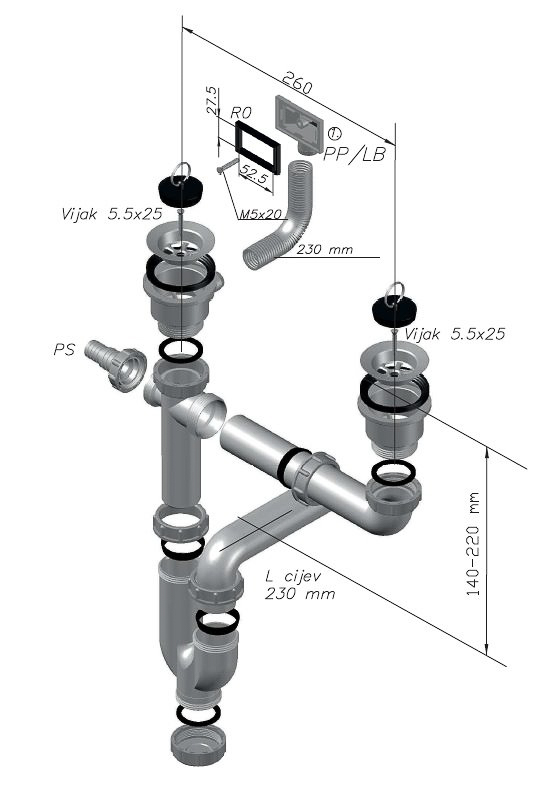 ALVEUS topelt sifoon, 1 1/2"