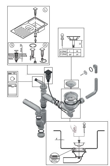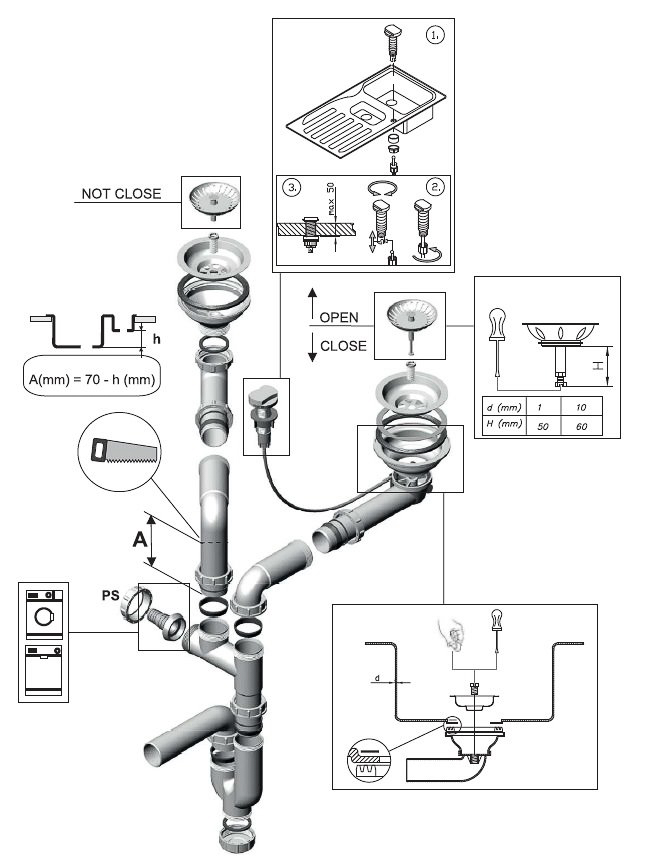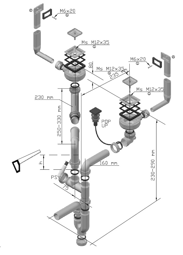 ALVEUS topelt sifoon, POP-UP, 3 1/2"